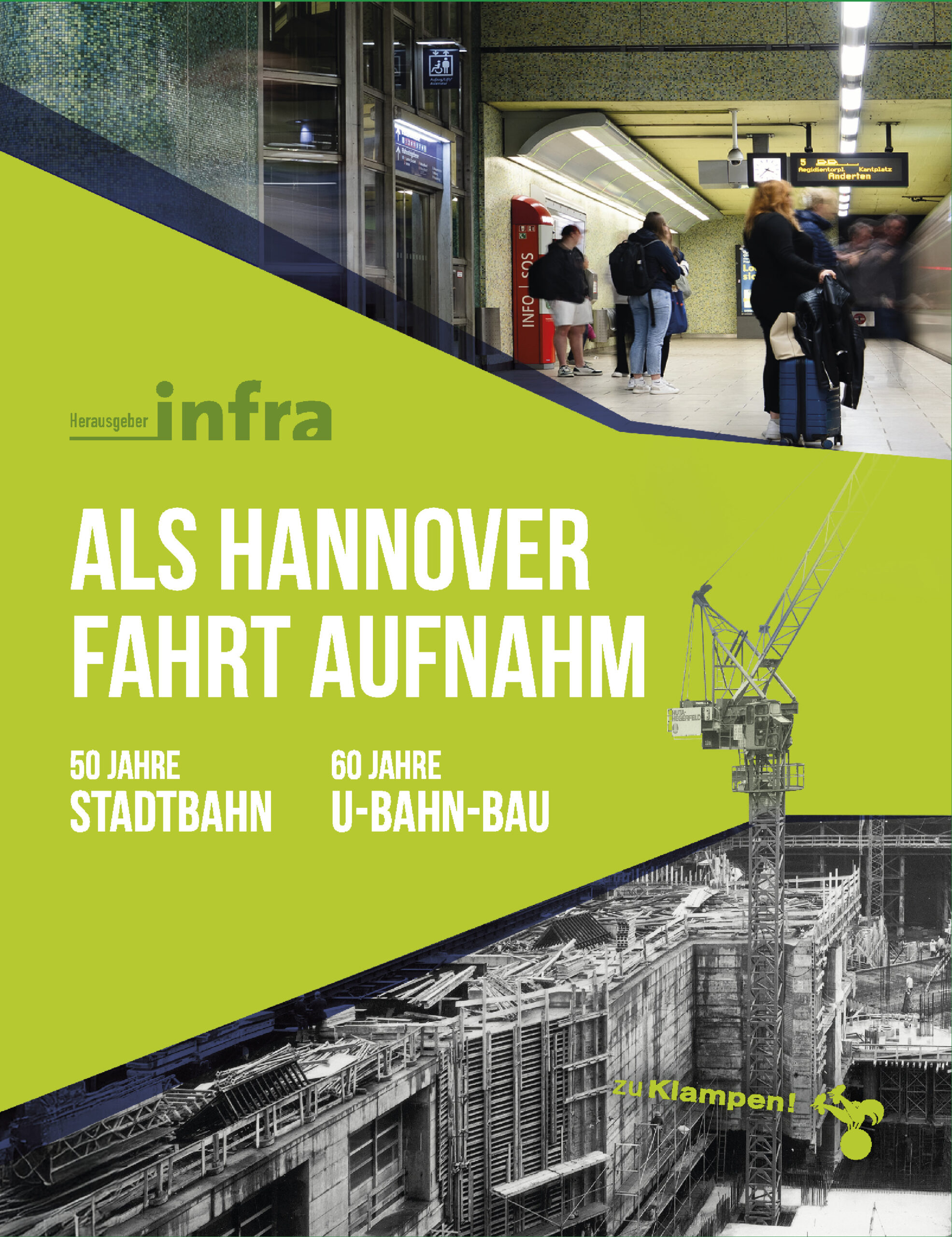 Die Infra Hannover hat ein Buch mit dem Titel „Als Hannover Fahrt aufnahm” im zu Klampen!-Verlag herausgebracht. Der Untertitel „50 Jahre Stadtbahn – 60 Jahre U-Bahn-Bau” verrät die beiden Jubiläen, die im Herbst 2025 zu feiern waren. Auf 176 Seiten wird das bahnbrechende Vorhaben vorgestellt, welches das Gesicht der Stadt für immer veränderte. Die Autoren schildern nicht nur die Komplexität der Aufgabe, sondern auch die zahlreichen Herausforderungen bei der Durchführung. Anekdoten von Zeitzeugen machen jene Phase der Stadtgeschichte lebendig. Diese Chronik der Geschichte des Nahverkehrs in Hannover erscheint am 17.11.2025 und zeigt auch einen Ausblick auf die Zukunft der Stadtbahn.