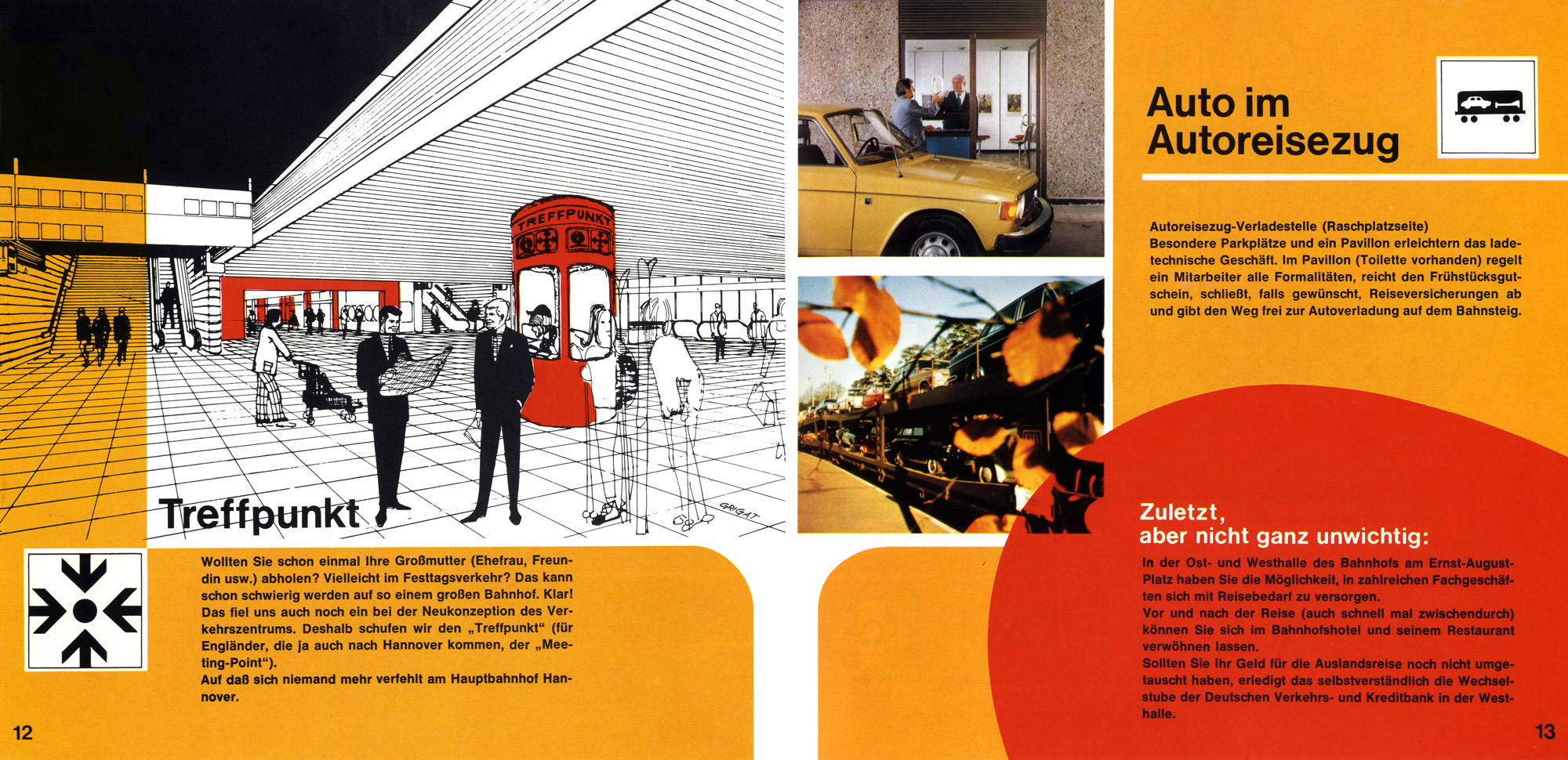 Dieses Heft vom Dezember 1974 stellt im zeitgenössischen Design der 1970er das Innenleben und die Ausstattung des durch den U-Bahn-Bau umgestalteten neuen Hauptbahnhofs vor.